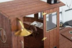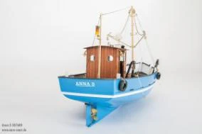 The scale of 1:20 offers a spacious vacuum formed ABS hull. The kit comes with laser-cut wood parts and a wooden deck that has all the planks and details engraved. The parts for the wheelhouse are made from mahogany plywood, the window panes are laser-cut as well and fit the openings perfectly. Masten and booms are aluminium.