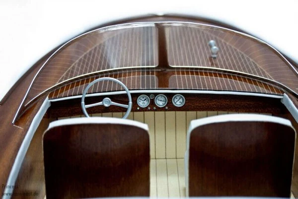 The Princess is a model of a typical Italian sports boat designed in the middle of the last century, drawn up to a scale of around 1 : 8. Then as now the Princess is built from high-quality mahogany timber.