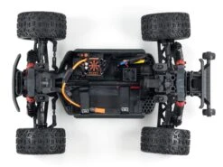 The proven tough ARRMA® 4X4 platform lets you bash at high speeds in almost any environment – off-road, on dirt and grass, on parking lots and over paved and asphalt surfaces. Its durability comes from a strong composite chassis featuring extended height dirt defenders, oil-filled shocks with silicone O-rings, metal geared differentials and more. Rugged bumpers and high-traction dBoots® Katar™ tyres mounted on tough, gun-metal colored wheels add to its unstoppable performance. The VORTEKS™ 4X4 3S BLX also includes a sleek, new stadium truck body with tough, injection-moulded wing and protective roof skids.