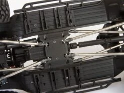 The SCX10â„¢ III Jeep® JT Gladiator uses new AR45â„¢ portal axles to improve performance by increasing the ground clearance and reducing torque twist. The motor is located at the front of the chassis for forward weight. The standard battery tray is positioned near the vehicle’s center for improved balance and accepts full-size LiPo or NiMH packs. There are also locations in the side pods for drivers who prefer smaller “shorty” LiPo packs. Inner fenders and floor sides hide internal components that would usually be visible from the side of the chassis.