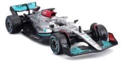 Diecast 1:43 scale model of the Mercedes Benz W13 car as raced by George Russell in 2022