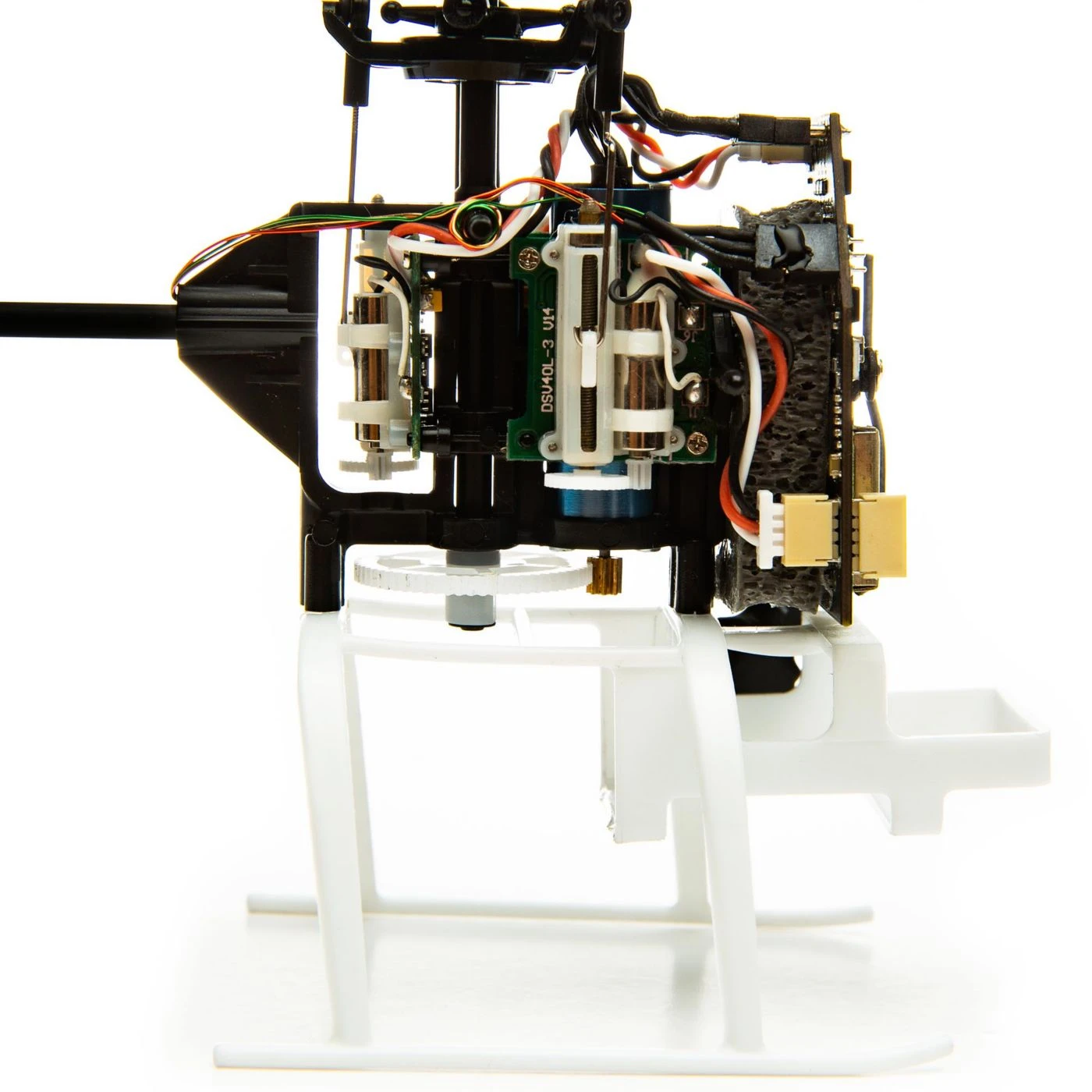 SAFE Z Altitude Control uses the heli’s on-board accelerometer to maintain a consistent altitude. Plus, the new flight controller has been mounted vertically to improve damping and remove vibration to the gyro.