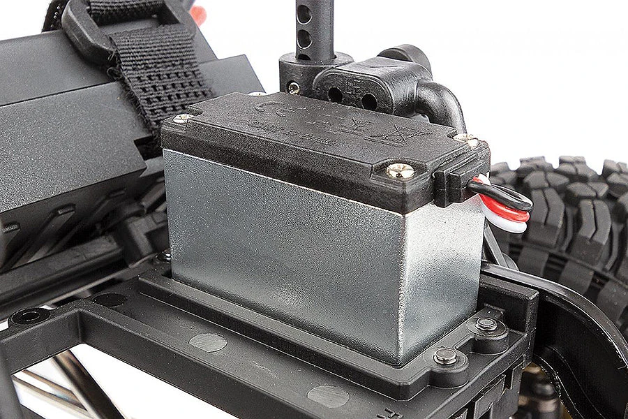 Reedy Power Electronic Speed Controller (ESC): The water-resistant SC480X brushed ESC is specifically programmed for crawling with proportional forward/reverse, dual auxiliary power output leads, LiPo low-voltage cutoff protections, and T-plug connector.
