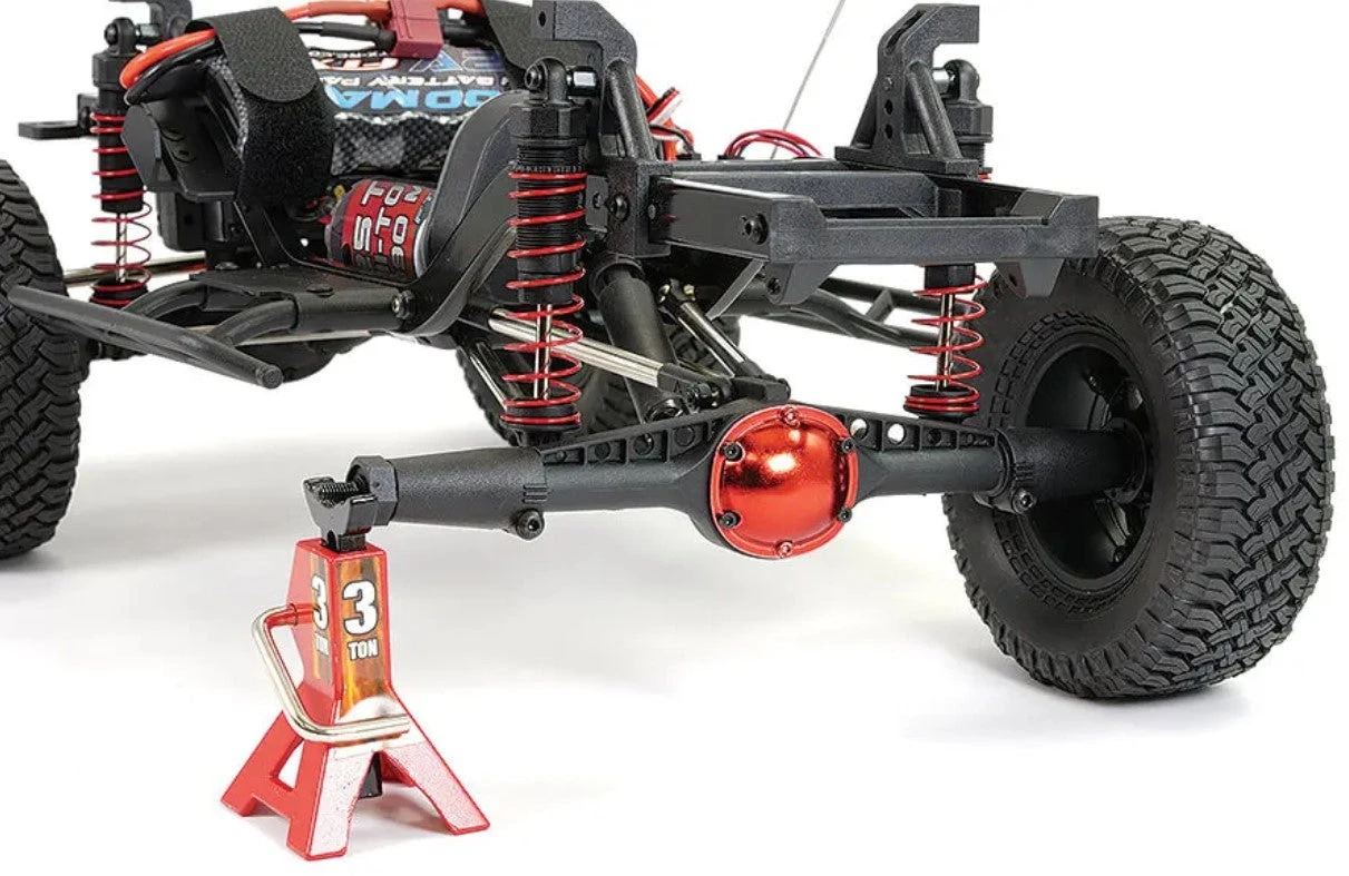 Updated locked front and rear axles feature a scale removable cover for access the metal drive spool and crown gear, while side chassis rock sliders help those annoying snags.