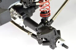 Aluminium CNC shock absorbers are standard front and rear as are dual rated front springs. With the battery pack mounted further forward and the motor and Etronix 15kg servo set directly over the axle, weight bias and climbing ability is greatly improved.