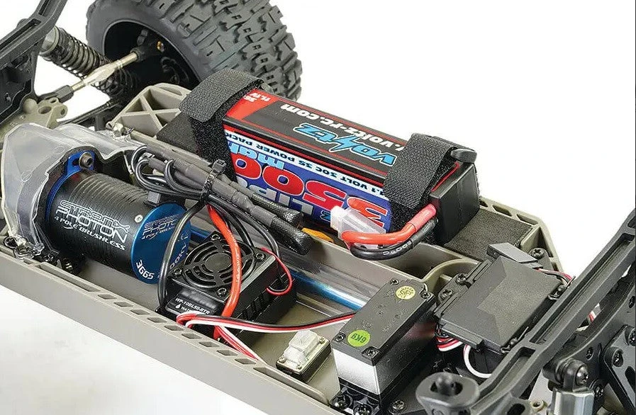 The Hobbywing brushless speed control and 2500kv motor, coupled with the supplied 3S 3500mAh Lipo battery provides amazing speed for a super driving experience from a model of this size via the 4WD shaft design and front and rear metal geared differentials.