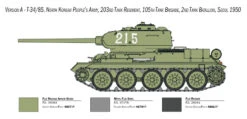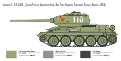 The T-34 tank is certainly one of the most famous armoured vehicles of the Second World War and it was the mainstay of the Soviet Army during the conflict. The most important innovations introduced by the T-34 design were the frontal sloped armour, able to guarantee a better protection against the direct hits, and the adoption of wide tracks able to provide a good mobility on all types of terrain including mud and snow. The first version of T-34, armed with a 76 mm. short barrel gun, obtained immediately an advantage against the most common German tanks of the era as the Panzer III and the Panzer IV. In 1943 the T-34 was further improved with the adoption of a completely new turret, bigger and with a better armour, capable of housing the powerful 85 mm long barrel gun. Thanks to the new T-34/85 the Soviet Armoured Forces could effective face even the most modern and advanced German Tanks as the Tiger and the Panther. The T-34 had a lengthy operational career, even stretching beyond the conclusion of WW2: in June 1950 over 120 T-34 / 85s were in service with the North Korean People’s Army and then involved in the invasion of South Korea, predominantly in the early stages of the conflict.