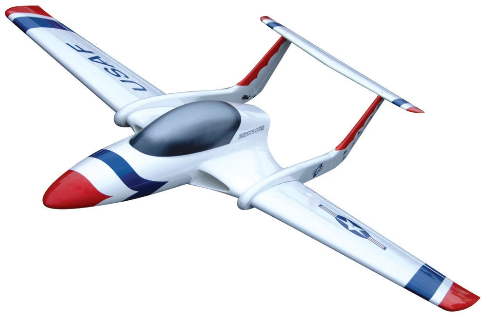 With the incredible success of the Xcalibur sport jet the next logical development was a larger version, after all, bigger models always fly better! This version of the Xcalibur+ is finished in an attractive display scheme based on the USAF thunderbirds aerobatic team.