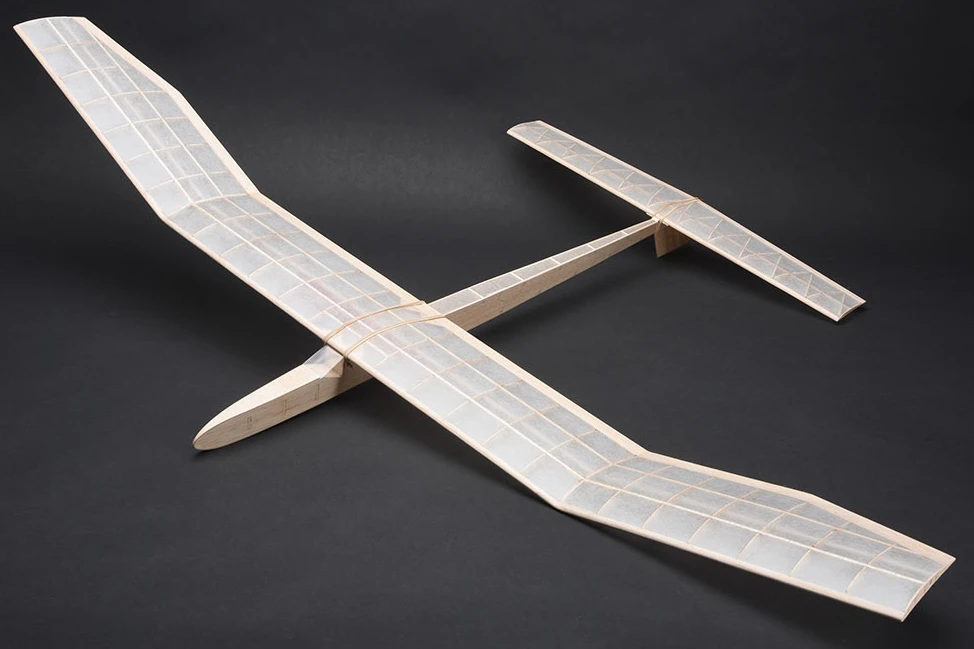 The Caprice is a competition level free flight glider kit that offers outstanding performance and stability. It flies so well that it requires your choice of dethermaliser system to prevent it flying away! The Caprice makes a great choice for an RC or timer dethermaliser, the size also lends itself to a full RC conversion for the more adventurous builders among us. The large 51″ wingspan offers stunning performance and a very rewarding long duration flights. The polyhedral wing offers great stability and the highly efficient aerofoil provides excellent lift. The fuselage is constructed from simple flat balsa sides and the tailplane looks beautiful thanks to the geodetic rib format.