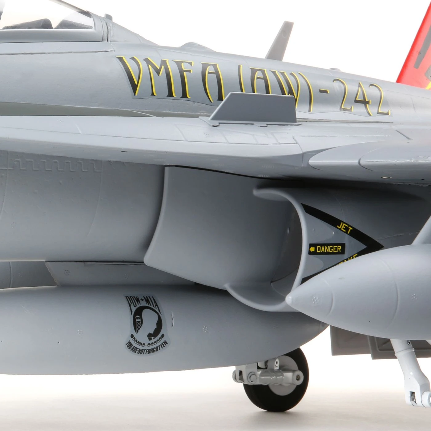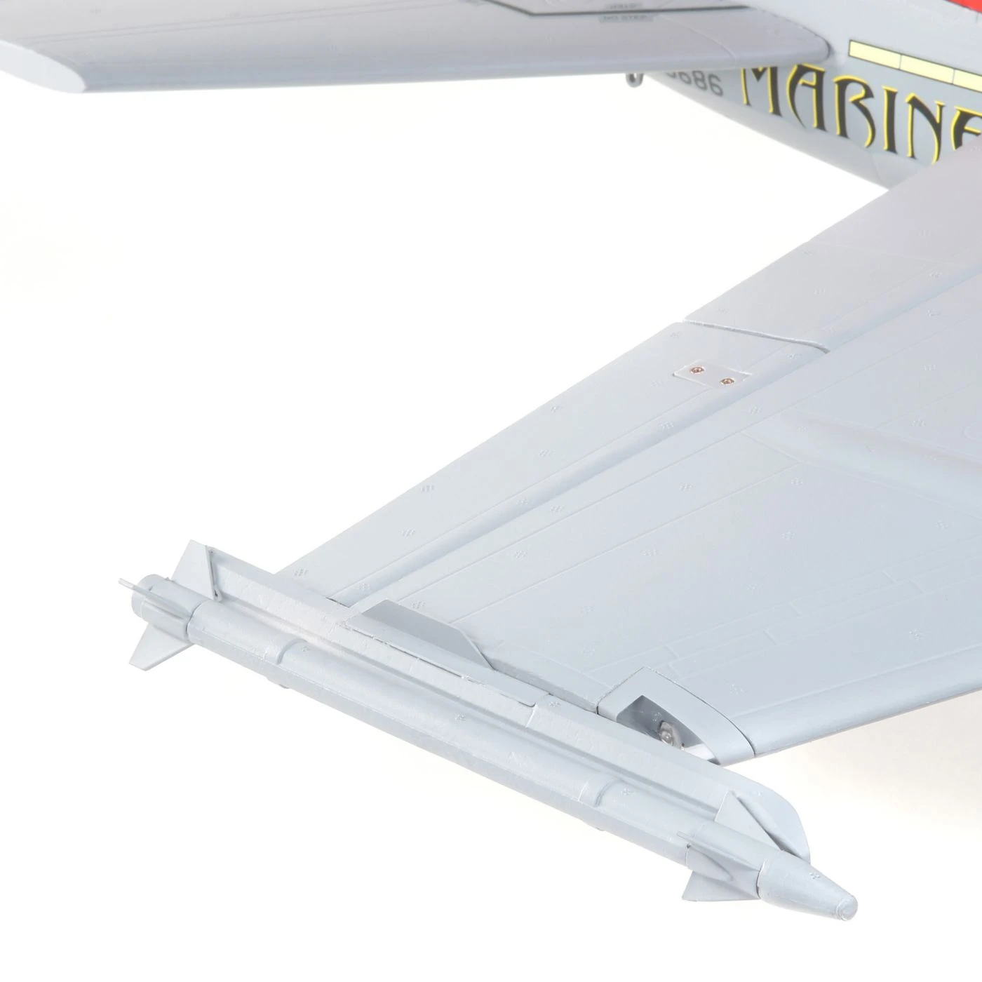 The F-18 Hornet 80mm EDF features an accurate outline and an abundance of Extra Scale details including molded-in panel lines and hatches, painted landing gear, removable ordnance and drop tanks – more details than you typically find on similar class and smaller models.