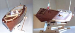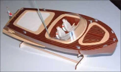 Reproduction of a typical inboard engine boat, as can be seen on lake Garda or Venice. The construction is keel, frame and double planking. The first layer in balsa wood and the second in Mahogany. All parts are laser cut, accessories and motor are included. Ideal plank on frame RC boat.