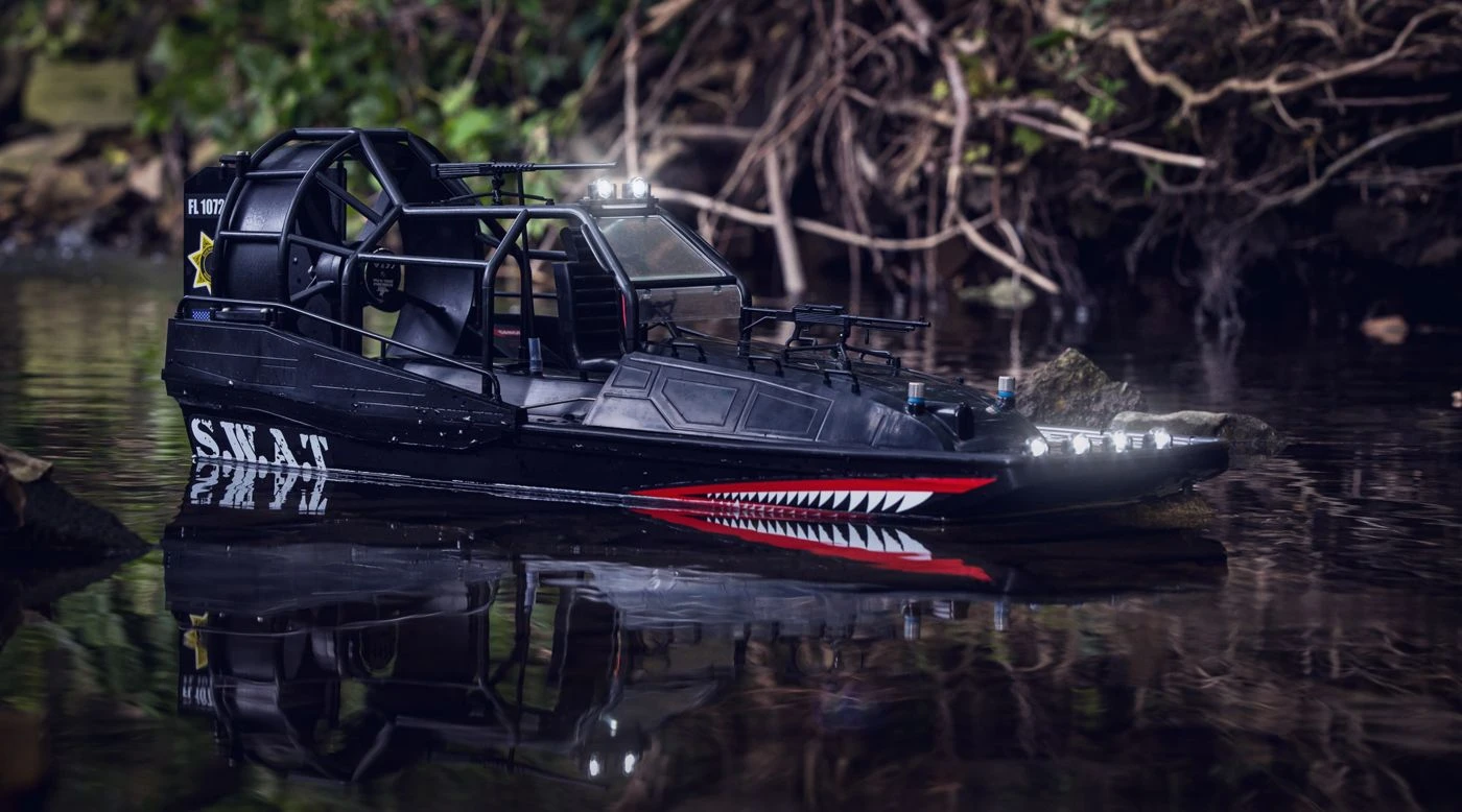 Run the Pro Boat Aerotrooper 25-inch Brushless Air Boat practically anywhere. Even on land! Featuring a brushless motor with 3-blade airplane-style prop mounted above the hull, you can explore lakes, plant-infested swamps, and small grass fields