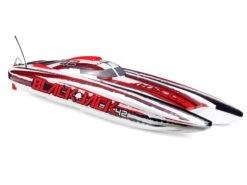 The Pro Boat® Blackjack™ 42 Brushless 8S Catamaran is a return to the days of large-scale racing boats taking on all comers with style and speed. The 8S-rated Spektrum™ 160A High Voltage, water-cooled, Smart™ electronic speed controller works tirelessly to power the Spektrum™ Marine 4685 4 Pole, water-cooled motor which is capable of producing up to 5.3 horsepower and hitting 55+ MPH! There is no other boat in this size, with this much power, at such an affordable value. Of course, everything is controlled by the Spektrum Smart™ System making this speed demon incredibly intelligent. A Spektrum DX3™ Transmitter and waterproof SR6110AT 6-Channel Telemetry Receiver keeps everything tightly connected for an interference free operation with built-in telemetry. The Blackjack also features an impact resistant polycarbonate hull, polycarbonate canopy with aluminium thumb screws, a clean moulded composite interior, and an aluminium rudder and propeller strut. Lay your cards on the table and make the lake your own with the Pro Boat Blackjack 42 Catamaran.