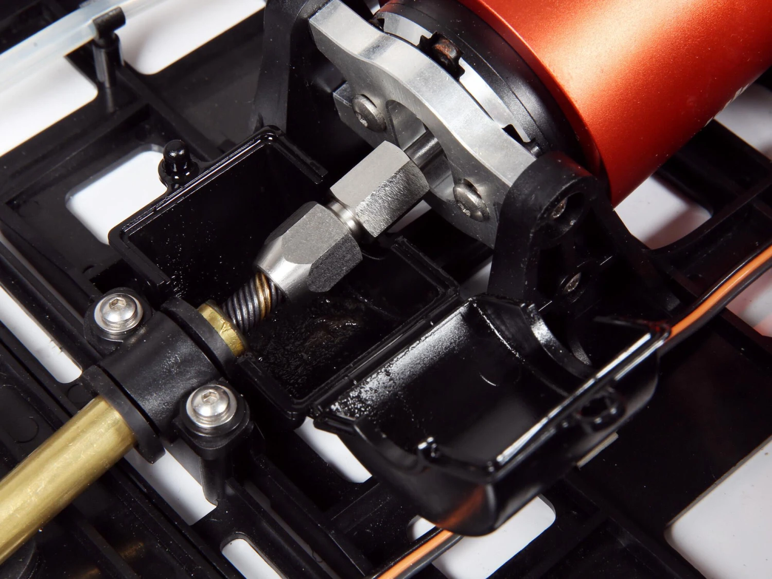The high torque digital servo provides all the necessary power. Waterproofing makes sure the servo is up to the task of being in a boat without the risk of failure do to getting wet.