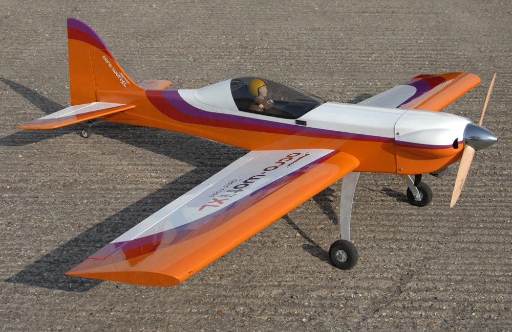 The Acro Wot has been an amazingly popular model for many years now and the only improvement we could make was to make it larger – well here it is, combining the superb aerobatic abilities of the original model with the increased docility brought with the larger wing area and weight, this being particularly noticeable in the windy weather we seem to get so regularly. Primarily developed for petrol engines of 25 – 35cc, the Acro Wot XL can also be powered by suitable larger glow engines if preferred.