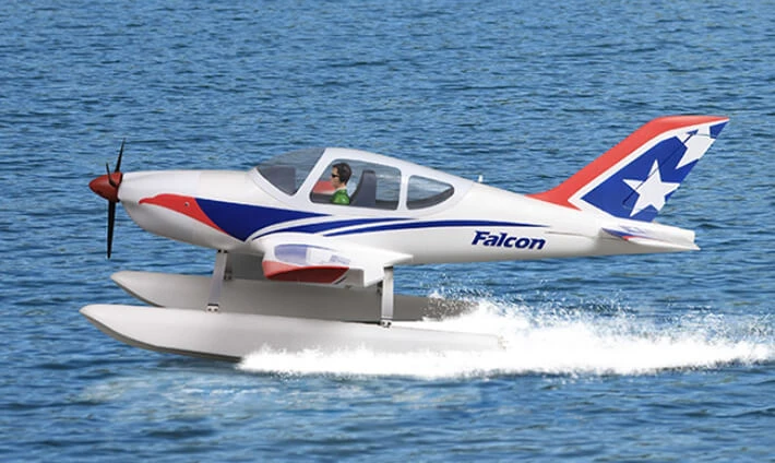 The Falcon is assembled with screws only so you can be out flying quickly! If these features are not attractive enough, you can add the optional float set. The enhanced power system allows the plane to take off and land on the water with ease.