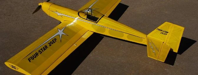 Four Star 20 EP Model Airplane Add to this the portability of a smaller size and the quietness and convenience of electric power and you have another winner for sport flying.