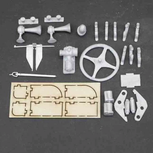 CNC Laser & Router cut from 1.5 & 4mm Plywood the kit includes all wood Parts with Laser cut lined Decking, Clear acetate windows, Flying Bridge Guard Rail Kit. Full Coloured building pictures & instructions. Boat Stand and white metal cast fittings set