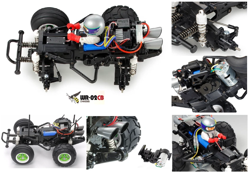 ★Removing the body gives a better look at the fun WR-02CB chassis – wheelies and off-road fun await!