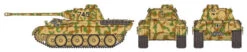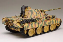 This 1/35 Military Miniature Series model kit depicts the German Panther, a WWII AFV developed by Germany to combat the mighty Russian T-34. Given the importance of stopping the T-34 as the Russians turned the tide in WWII, the Panther was a priority and this was emphasized by armored warfare expert Heinz Guderian’s role in the design process. The Panther packed a powerful L/70 7.5cm gun (rumored to have taken out a T-34 at 3km) and combined it with excellent mobility and a 55km/h top speed. Just as importantly, it made great use of T-34-inspired sloped armor, up to 80mm in places. As things turned out, development of the Panther was rushed as the German situation worsened, and this led to severe reliability problems in engagements such as the Battle of Kursk in July 1943. Despite that, it proved offensively and defensively highly capable. The Ausf.D was the initial variant of the Panther; 842 were manufactured between January and September 1943.