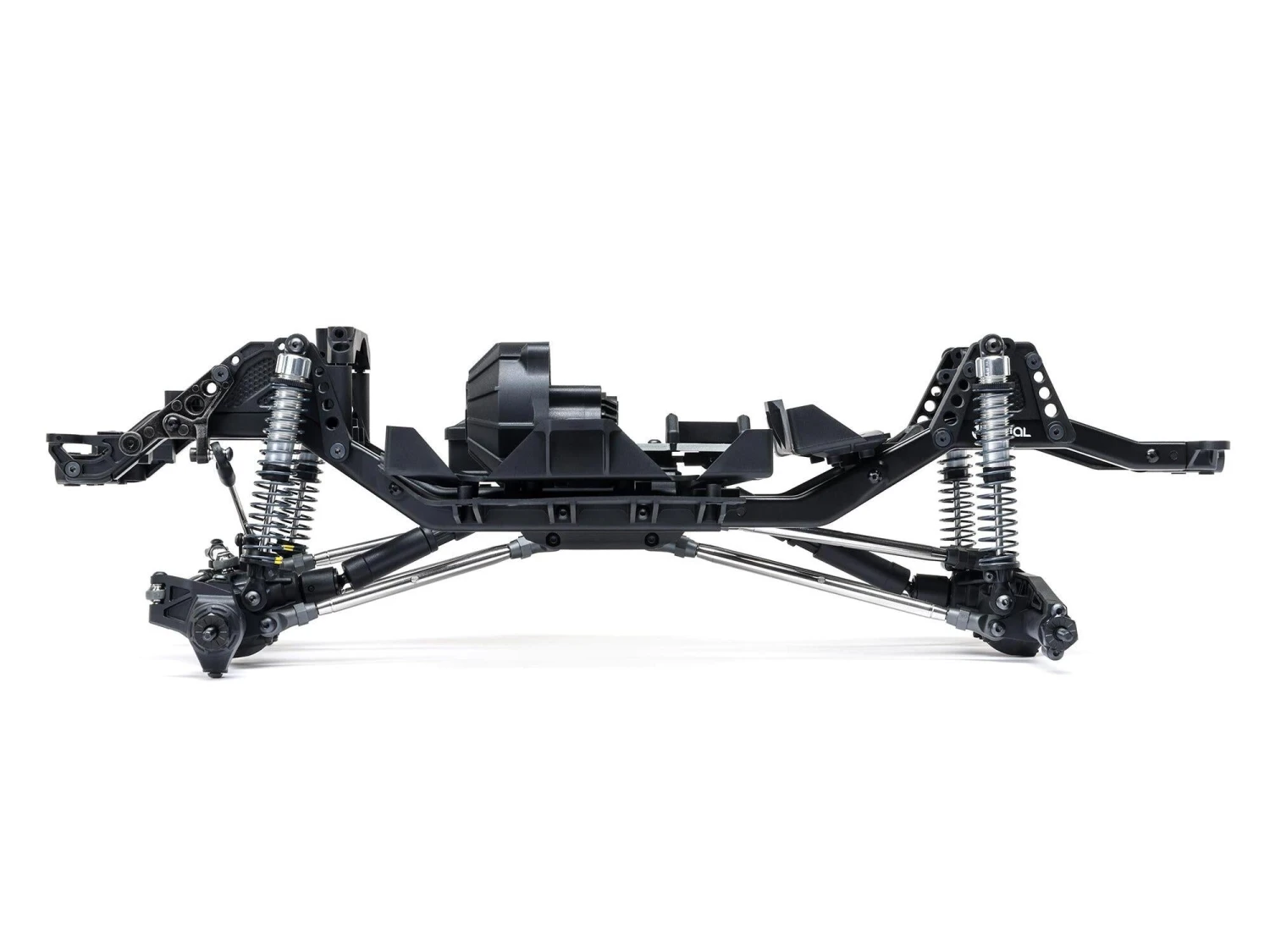 - Strong, adjustable SCX10 III steel C-channel chassis