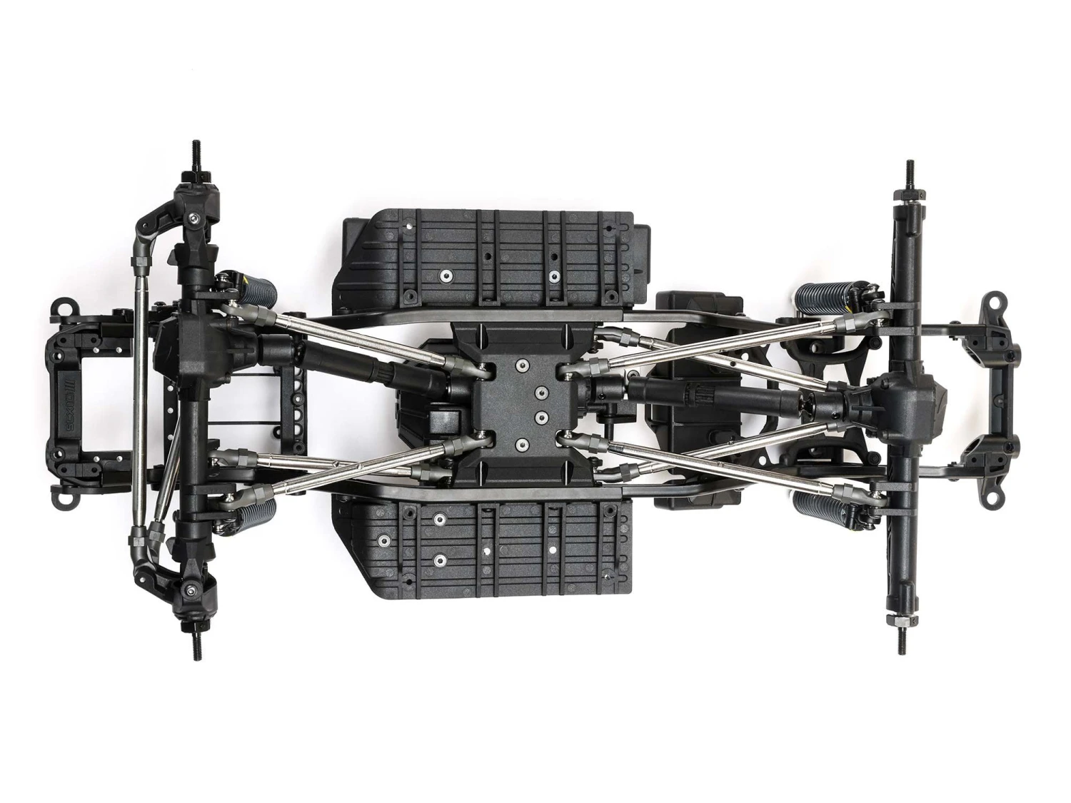 The Base Camp Kit’s strong, realistic SCX10 III steel C-channel chassis reduces frame flexing and increases the precision of suspension movement. It also adjusts to accommodate a wide variety of body styles (optional links req.).