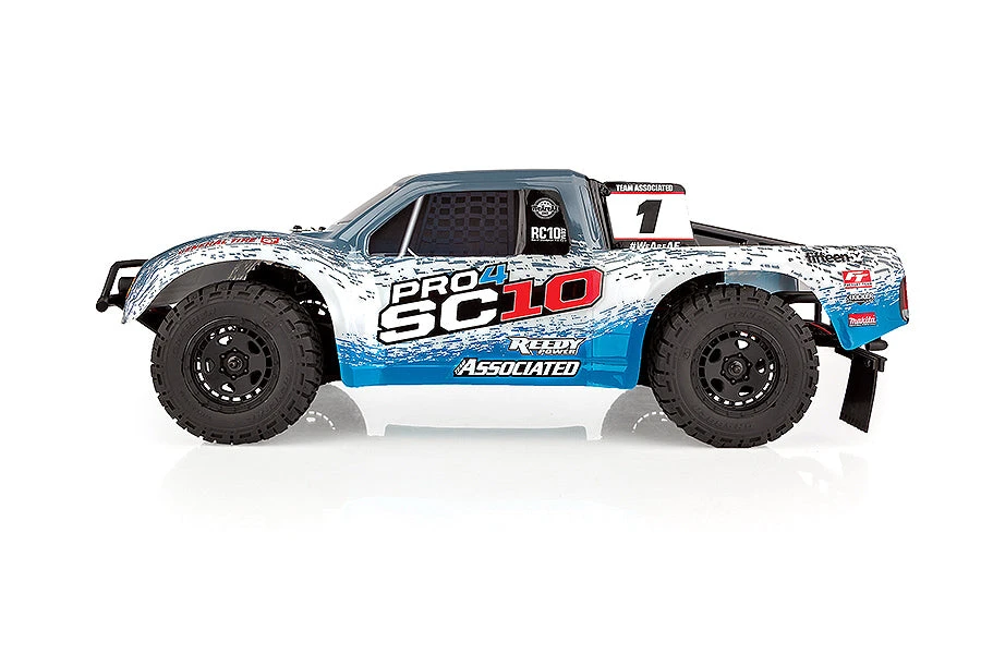 Team Associated’s Pro4 SC10 is a Ready-To-Run RC electric Short Course truck-all show and all go! It features some major upgrades not normally found in RTRs, including a water-resistant high-power Reedy brushless speed control, Reedy 3300kV brushless motor, water-resistant enclosed receiver box, adjustable oil-filled coil-over shock absorbers, and four-wheel independent suspension. The gearbox is a heavy-duty three-sealed gear differential. The short course proudly rolls and jumps on Fifteen52 Turbomac HD wheels wrapped in realistic off-road General Tire GT (R) GrabberTM all-terrain tires.