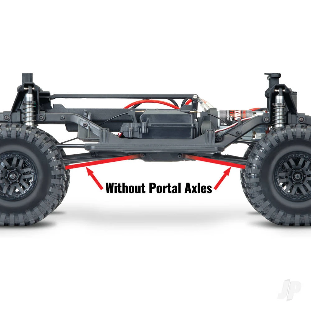 Portal axles lift the truck at the wheels for huge centre pumpkin ground clearance. In order to achieve the same clearance with straight axles, your tyres would have to be over an inch taller than the tyres on the TRX-4.