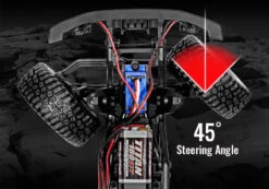 TRX-4M outmanoeuvres much smaller trucks thanks to its exceptional 45° steering angle—an impressive feat considering its larger and more versatile size.