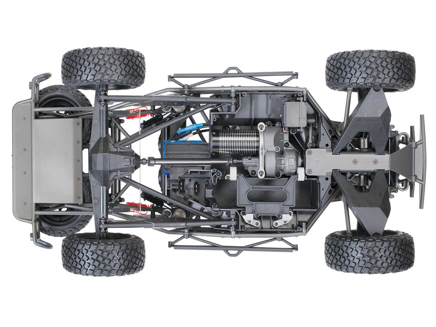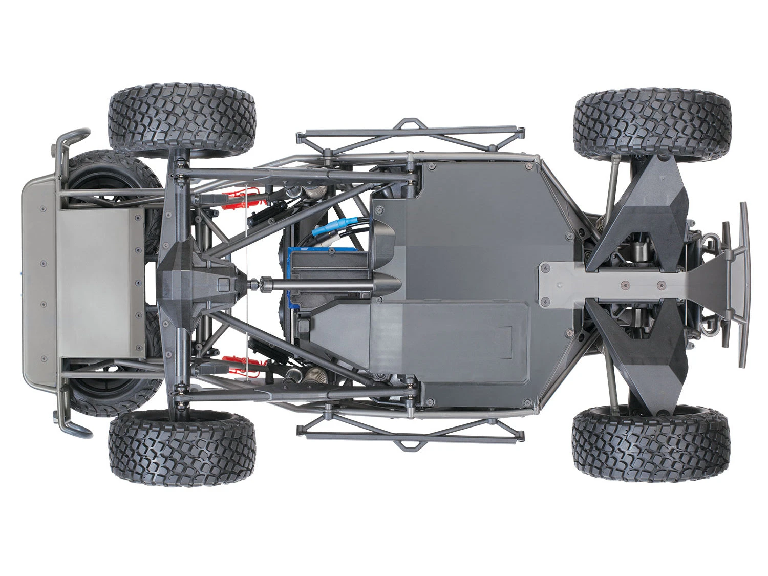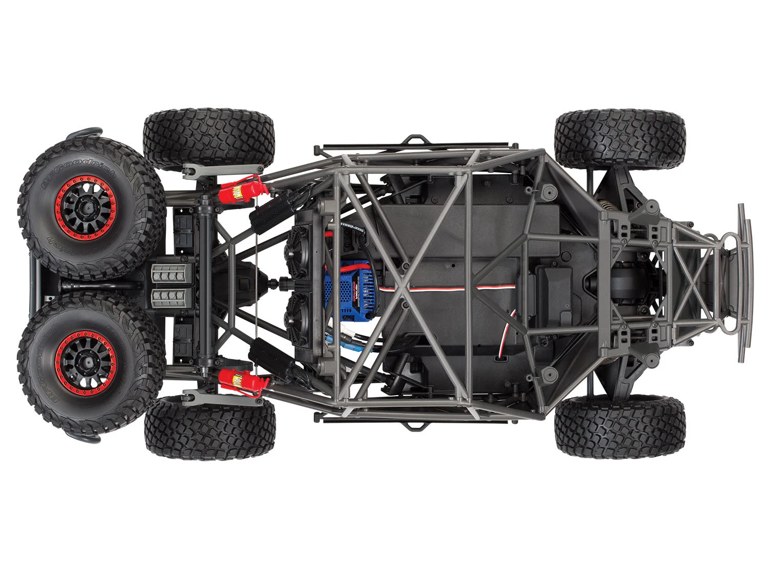 The Traxxas UDR is engineered on an authentic, true to scale 4-wheel drive desert race truck chassis. The 4-link solid rear axle design provides huge suspension travel with authentic driving dynamics. From the cantilever sway bars to the 8 GTR shocks, Traxxas has accurately reproduced a true unlimited desert race chassis in both form and function.