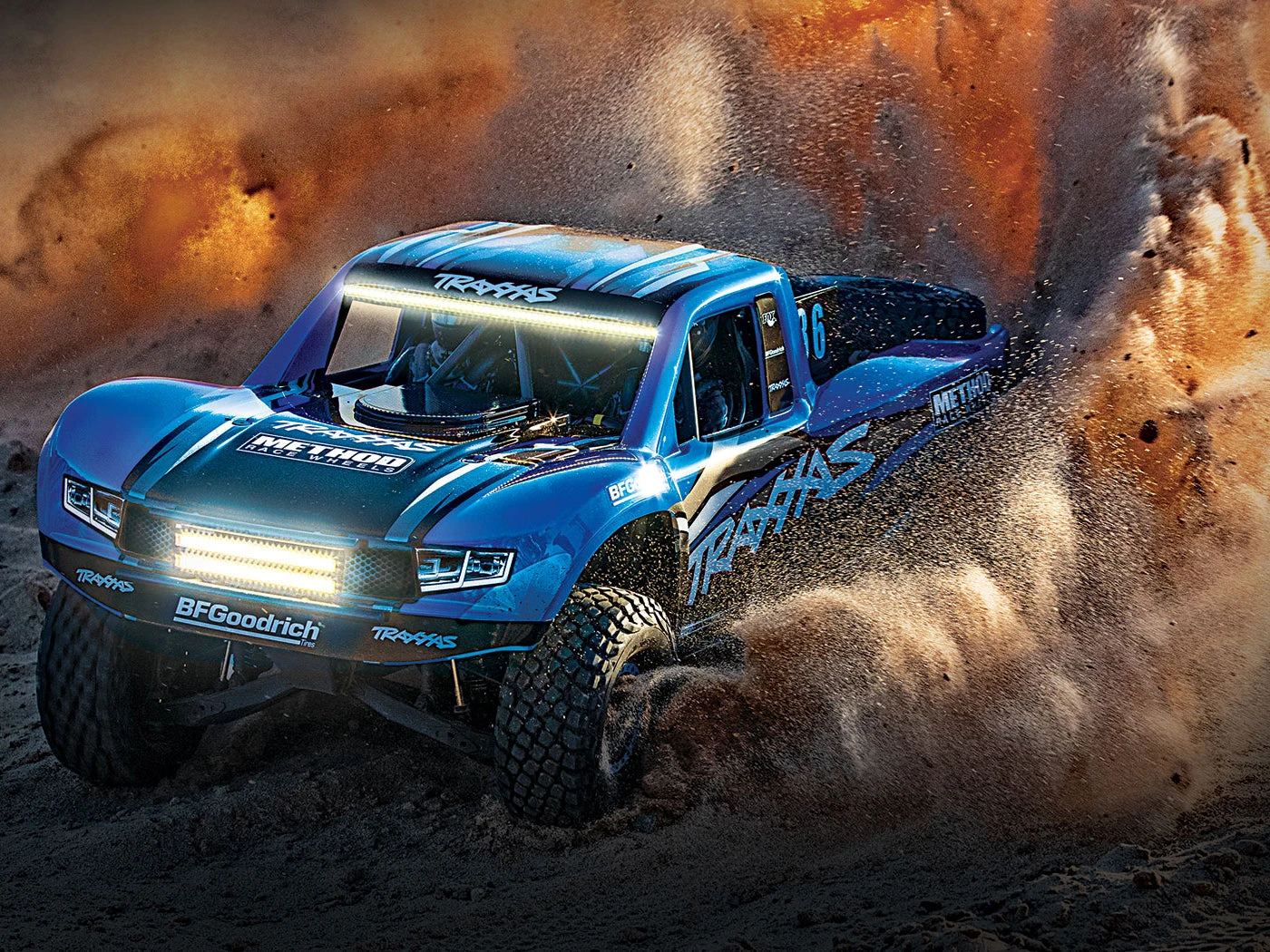 The Unlimited Desert Racer combines Pro-Scale performance with extreme 6s power for the most thrilling RC driving experience possible. The UDR drives like a real desert truck because it’s engineered like a real desert truck. A 4-link solid rear axle provides huge suspension travel with authentic driving dynamics. From the cantilever sway bars and high-voltage lighting system to the GTR shocks, Traxxas accurately reproduced a true desert racer in both form and function.