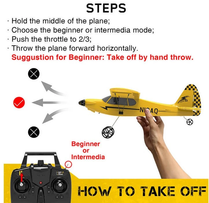 PLEASE NOTE: Suggestion for beginners: Take off by hand launch.