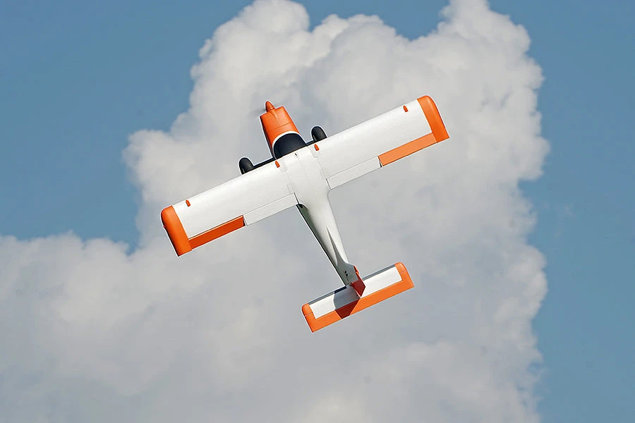 The XFly 1500mm(59.1”) Tasman is a STOL-capable, high-wing airplane featuring sporty flight and aerobatic 3D performance. The Tasman’s impressive flight characteristics and large air-filled shock-absorbing tires make short takeoffs and aggressive landings on any type of surface easy. The 4S-compatible brushless motor, 40A ESC, 2-blade propeller and a 4S Lipo battery proved to be the optimum setup for power and duration, allowing the plane to hover, roll, loop and fly inverted easily, which makes it highly recommended as an advanced trainer.
